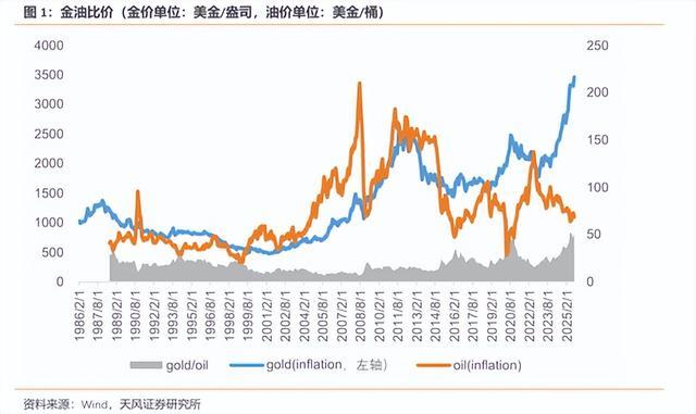 在常规逻辑下,黄金和原油往往是共振的,因为都具有抗通胀的属性,而且还存在一个“金油比”的概念——黄金和石油的价格不可能长期大幅度背离。
